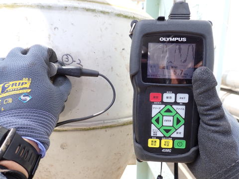 化学プラントや発電設備などの定期点検における圧力容器や配管などの残存肉厚の測定などに用いられます。 |